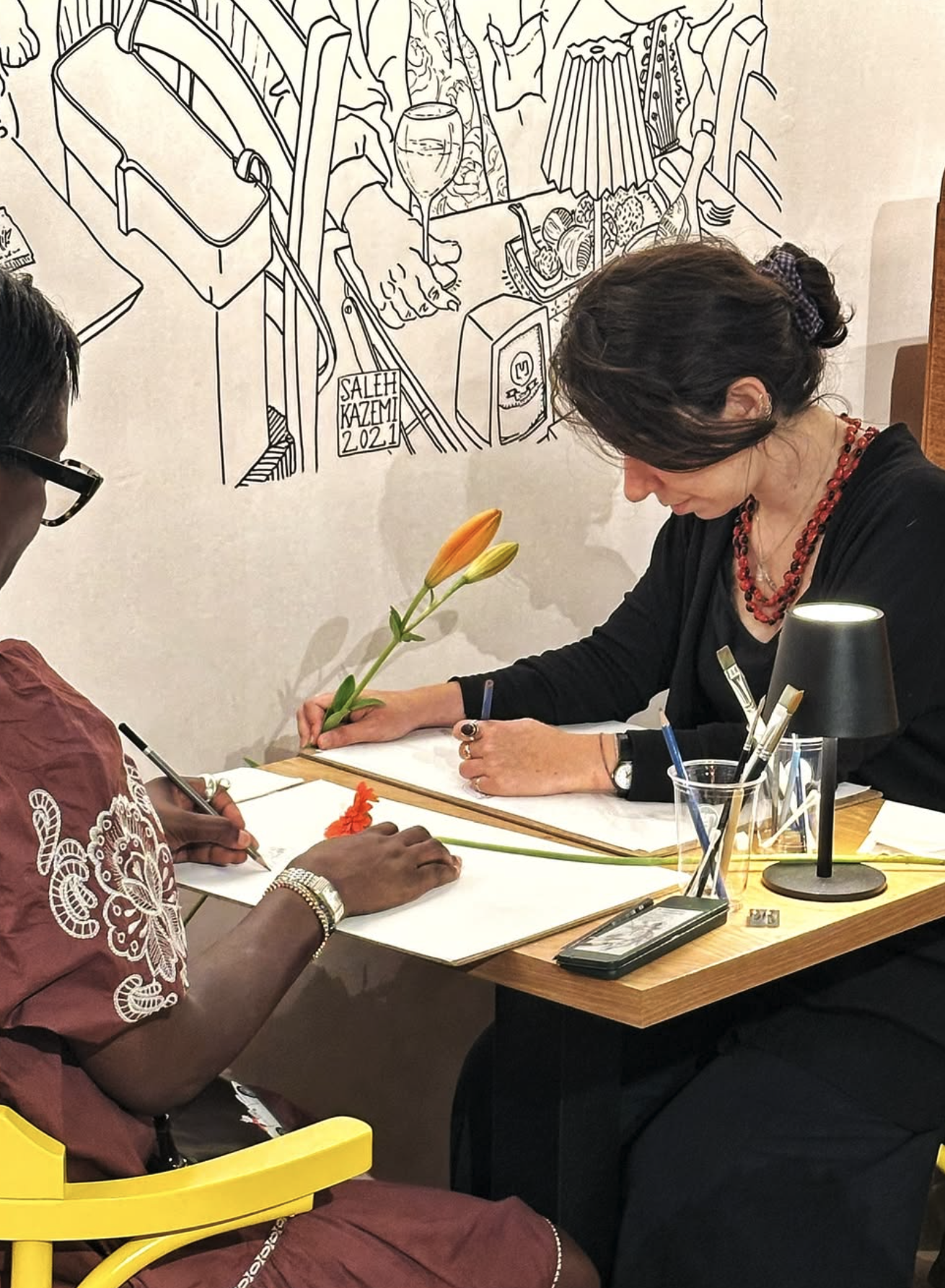 We were asked to experiment by drawing left-handed - something that felt awkward, at first. “Let’s try drawing with the right side of the brain,” Sisetta encouraged, her voice calm and assured, as if she’d done this a hundred times and still found something new each time. The point wasn’t precision. It wasn’t about neatness or control. It was about slowing down, quieting the thinking brain, and letting something deeper take over. And when we finally looked down, we were surprised to see that our left-handed sketch wasn’t that bad. In fact, it had something our usual drawings often lack: looseness, honesty, a kind of raw observation that only appears when you stop trying to impress the page.