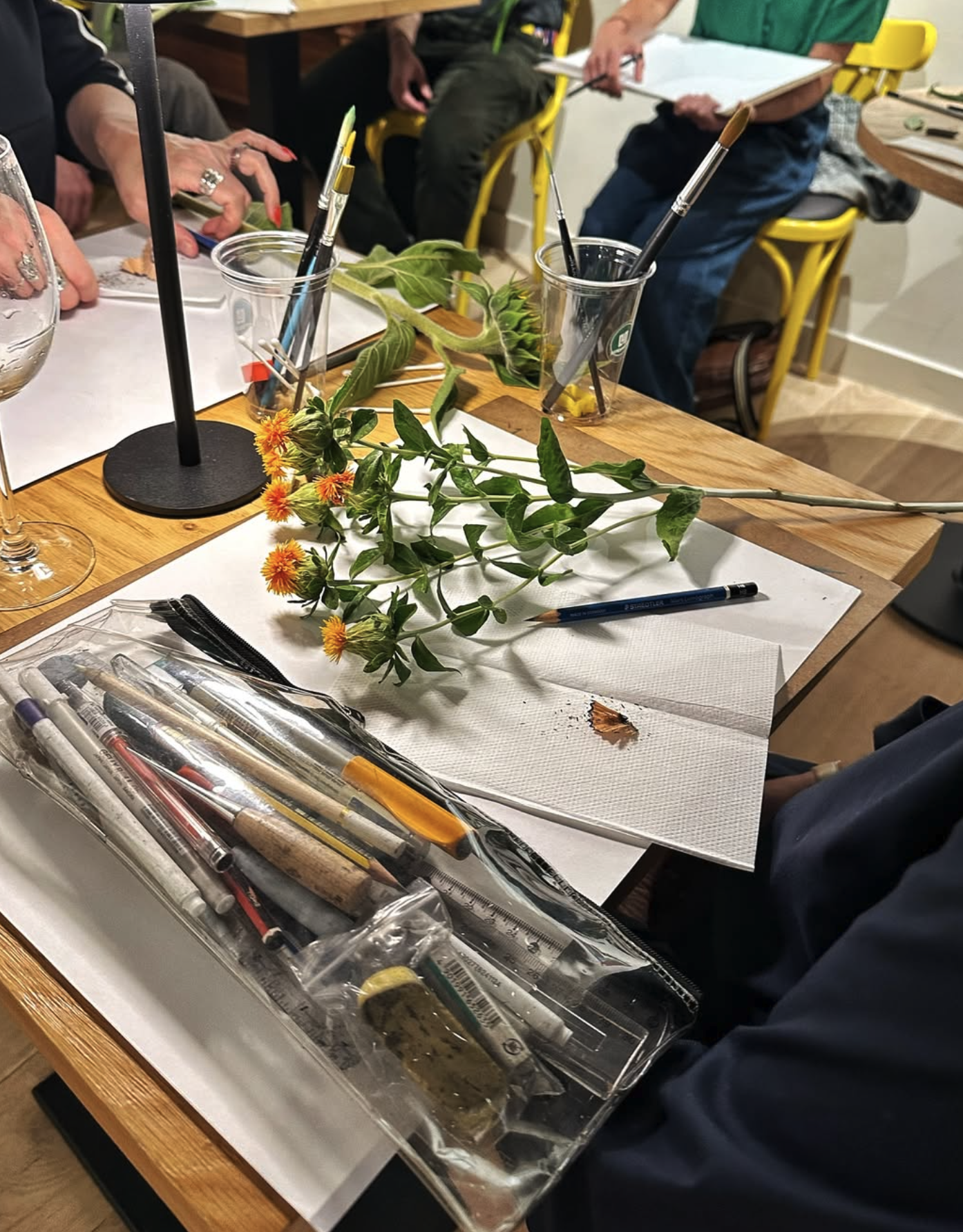 There’s a quiet sort of joy in putting pencil to paper with no pressure to get it “right.” No expectations, no judgment - just a few tables full of strangers, vases of flowers, and a gentle invitation to notice what we see.