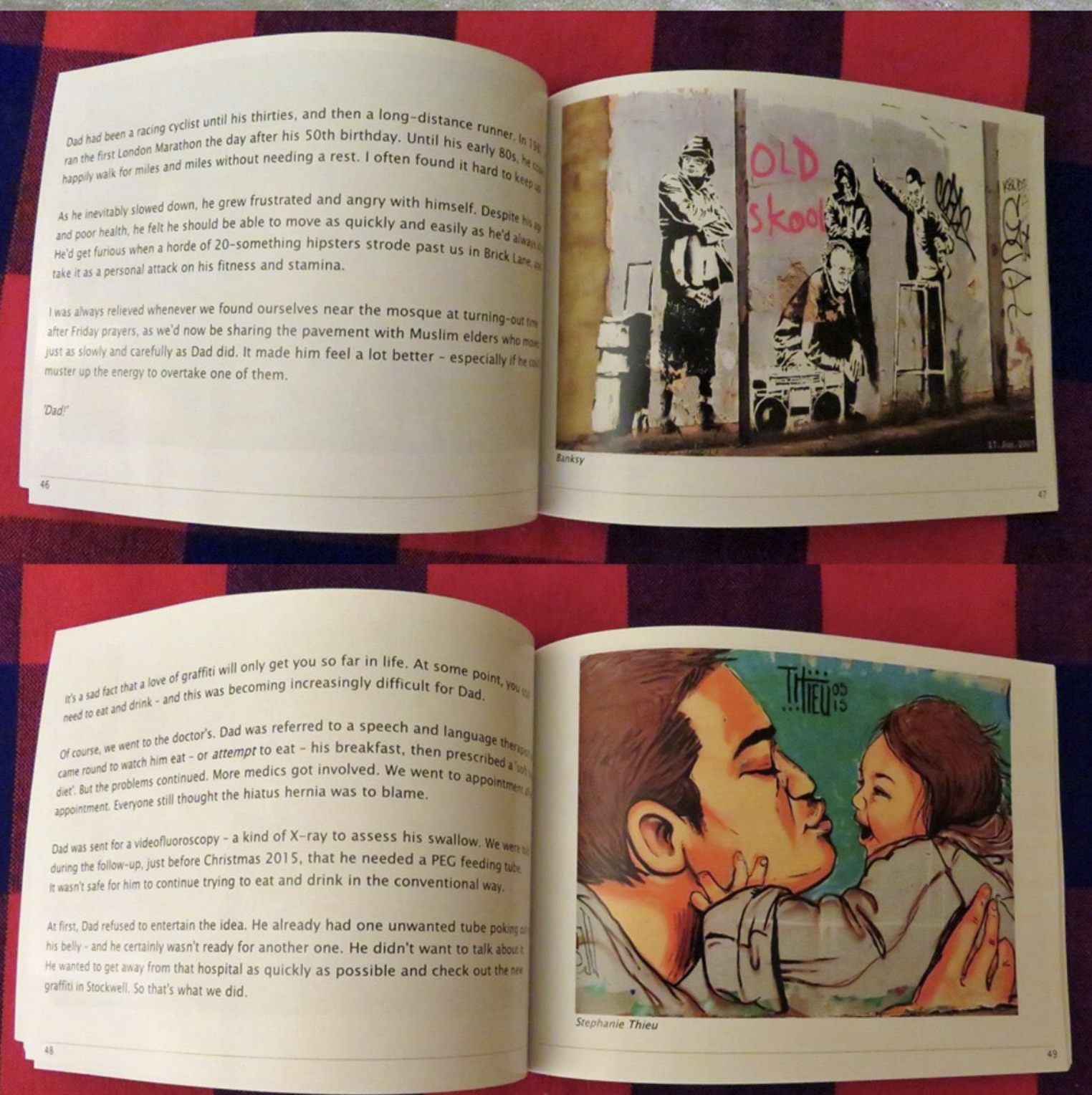 After he died in April 2017, we inherited 33,000 graffiti pictures alone. I had no idea what to do with them, but I wanted to tell Dad’s story and get his photography to a bigger audience. So that’s how How Graffiti Saved My Dad’s Life (At Least For A While) came about. We’ve since published two books of Dad’s weird and wonderful London street photography: Things My Dad Saw (But Never Bothered Mentioning) and its inventively titled follow-up, More Things My Dad Saw… All profits from these books go to St Christopher’s, and we’ve raised more than £5,000 and counting…