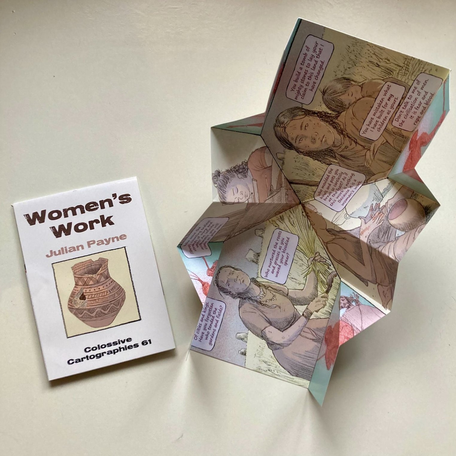 Tom: Since mid-2020, we’ve published 64-and-counting issues in our handmade Colossive Cartographies series, based around the Turkish map-fold. It’s an A6 format that pops up very pleasingly into a one-page A4 zine. I came up with the idea for the project during the first lockdown and approached a small bunch of creators (including Jane!) whose work I admired. It all just took off from there. It’s always great to see what inventive and surprising things people have done with the format – and we’re never disappointed.