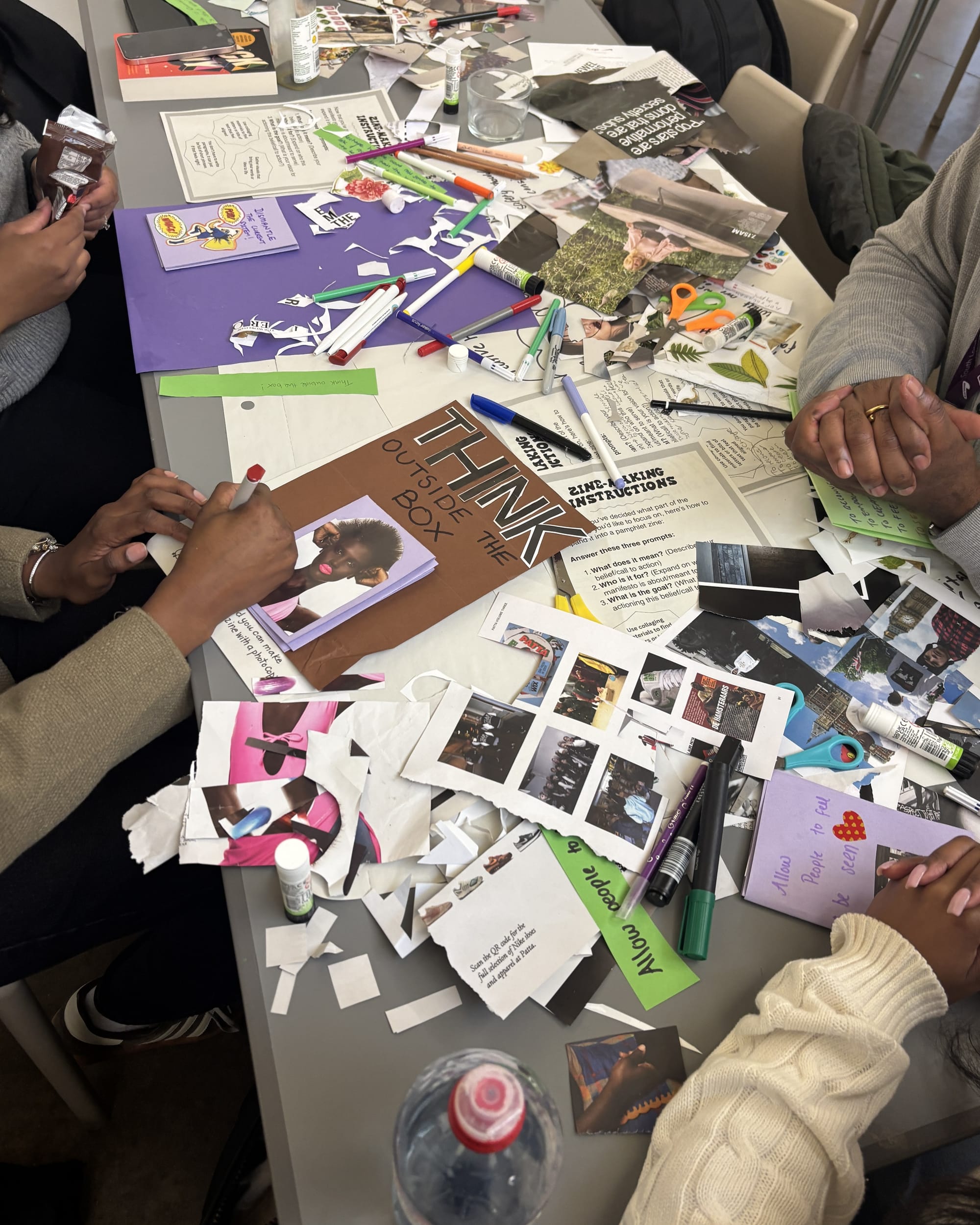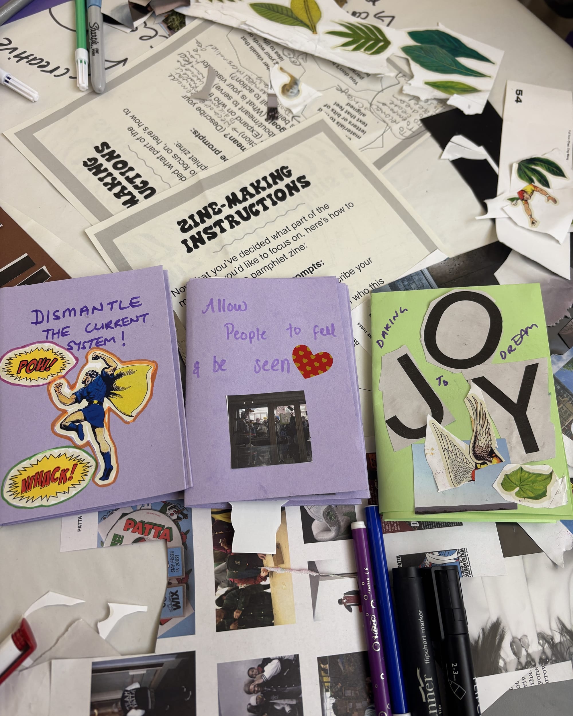 Usually workshops are a super relaxed crafty space. Think big tables with magazine cut outs and colourful paper sprawled across them. I usually do a live demonstration on how to fold a zine and always feel so satisfied seeing how excited and surprised people are when their zine finally comes together. Then, depending on the theme, I'll give a deep dive into what I want people to focus on, but I always reiterate that it’s a space of play. I've hosted enough workshops to know that you can plan it to a ‘T’ and there’ll still be people who just go with the flow and lead with vibes, which is totally okay too; it’s a space of play after all.
