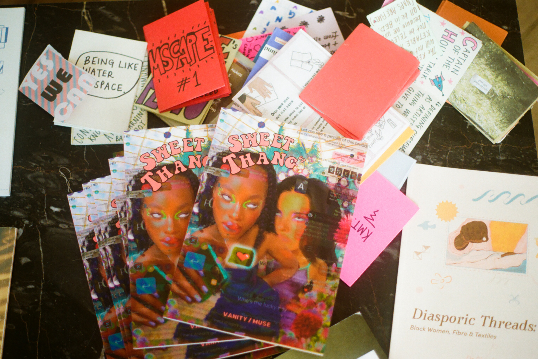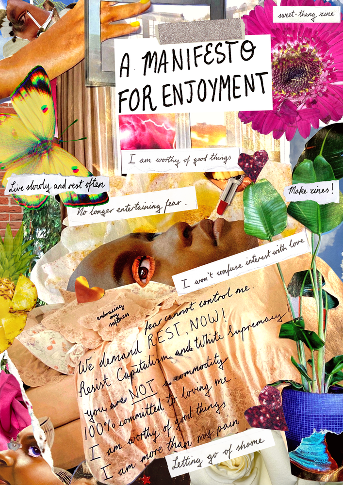 I say that sweet-thang ‘celebrates Black DIY creativity’, and what I mean by that is sweet-thang exists to spotlight creative work by Black artists who are doing cool shit independently. So through publishing print issues, self-producing events and hosting workshops, we’re uplifting Black artistry and bringing the power and magic of zine culture to people who want to support us.