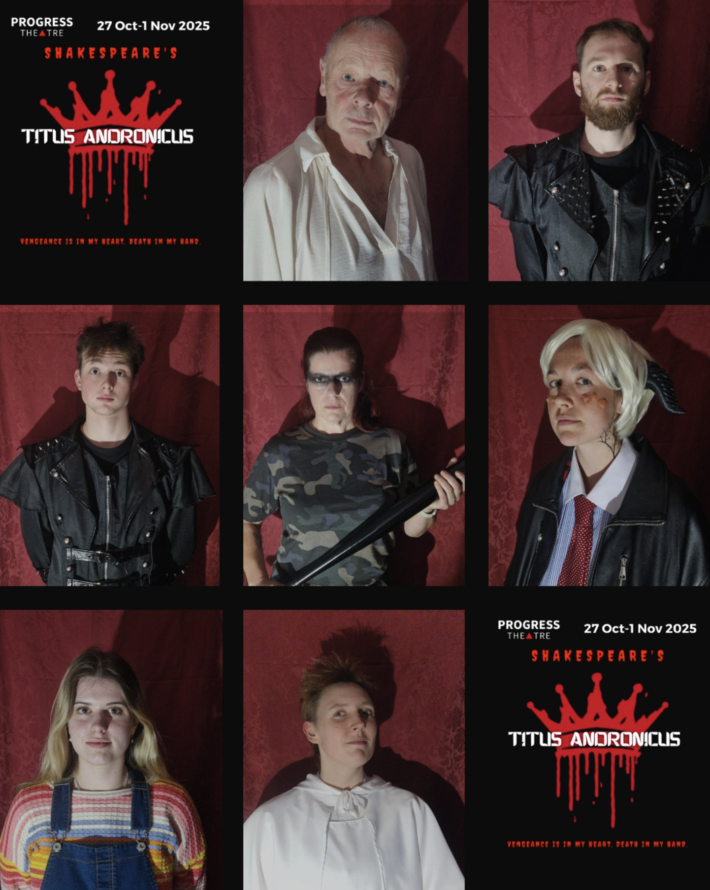 We attended Titan Andronicus on Halloween night at Progress Theatre in Reading, and the timing couldn’t have been more fitting. What unfolded was a confident, inventive reworking of Titus Andronicus that leaned into the play’s inherent brutality while reframing it through the lens of 1980s subculture. The result was a production that balanced unconventionality with intention, drawing on both Shakespearean tradition and community-theatre experimentation.