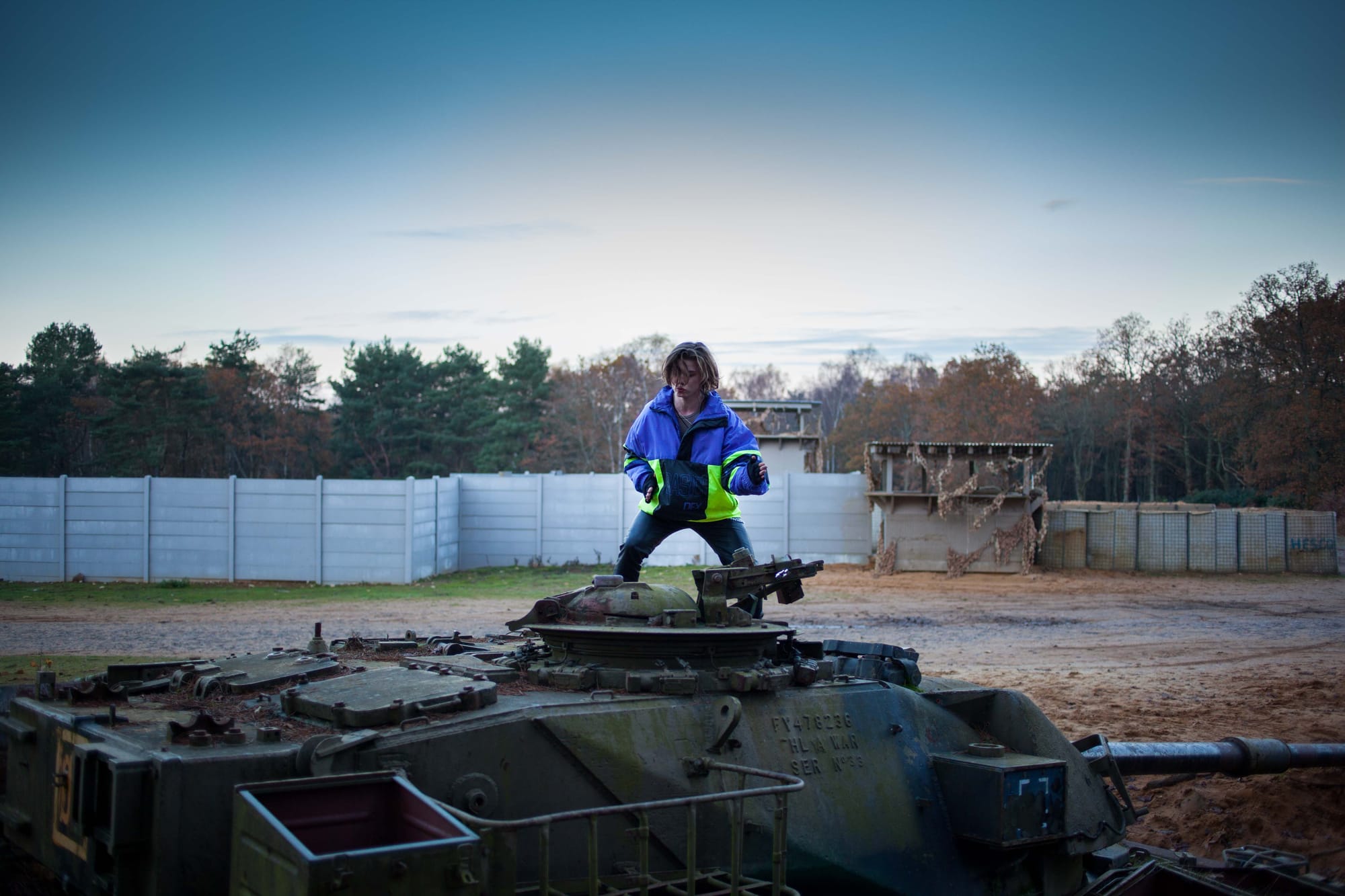 On 'Spaceship', I decided to cut the planned dialogue scenes one afternoon while filming on the Longmoor military camp as I just wasn’t inspired by them. There were blown up tanks and helicopters for training purposes and I remembered Lucien, one of the actors, had studied ballet, so I thought let’s film him doing ballet in his 80’s ski jacket on one of the tanks. I really loved the spontaneity of the moment and the footage was so beautiful, that’s one moment I just thought I’d really found something I love doing most in life.